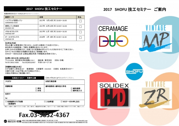【メーカー研修会】2017 SHOFU 技工セミナー