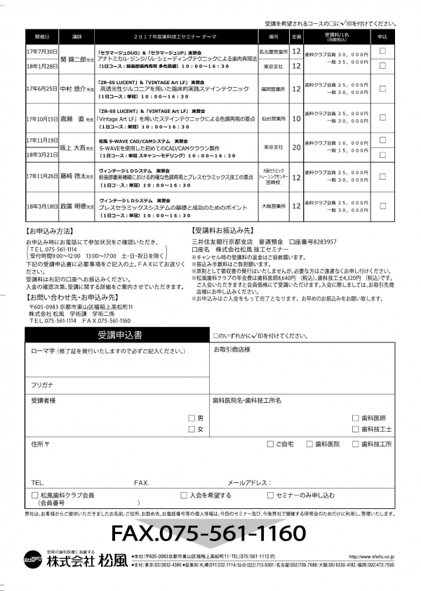 【メーカー研修会】SHOFU INSTRUCTOR HANDS ON COURSE