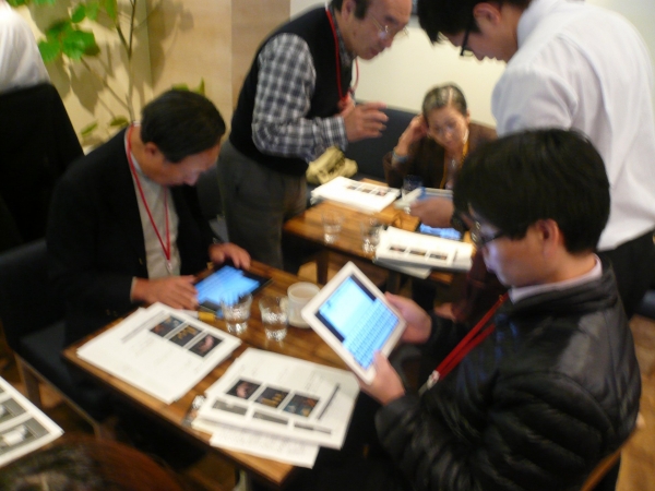 iPadを初めて触る参加者や普段から使用している参加者が居たが、①基本アプリ、②雑誌を自ら電子書籍化させる方法、③あると便利なアプリ、④iPad Keynoteでプレゼンの製作練習まで幅広いニーズに応えられた。iPad Keynoteの練習後、練習時に学んだテキストや写真の挿入の仕方、アニメーションの付け方を駆使して各自5分程の自己紹介プレゼンを製作した。短時間しか練習していないが、発表者はしっかりとしたプレゼンを製作することが出来ていた。