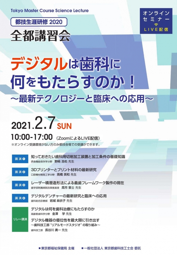 会場受講 :15名 ※東京都歯科技工士会 研修室