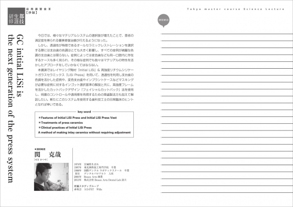 関 克哉 先生・・・「GC initial LiSi is the next generation of the press system」