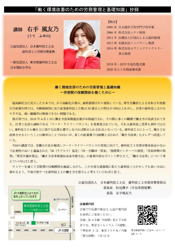 講 師:講師 右手 風友乃 先生 日本歯科技工士会労務対策委員