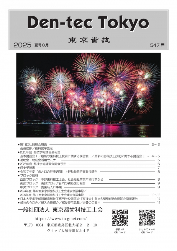 「Den-tec Tokyo 東京歯技」547号(夏号8月)内容