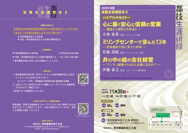 ● 東京都歯科技工士会会員 :10月30日㈭ AM10時~