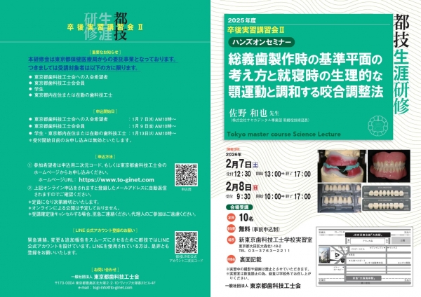 ● 東京都歯科技工士会会員 :1月 9 日㈮ AM10時~